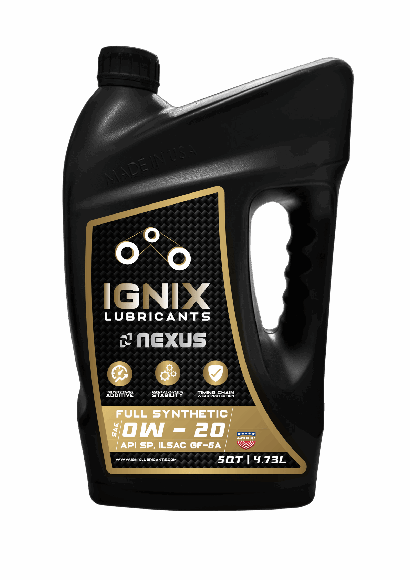 Ignix Nexus SAE OW-20 is a premium full synthetic motor oil manufactured for use in modern gasoline engines that require ILSAC GF-6A, API SP, API SN Plus, or API SN performance